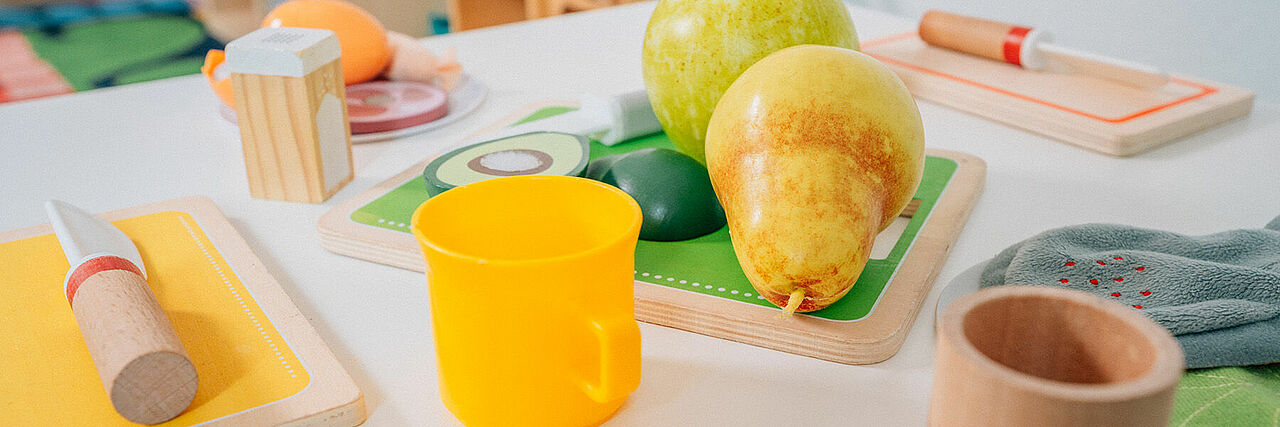 Uns ist es wichtig, dass Kinder in der Kita lernen, dass gesunde Ernährung alltäglich und lecker ist. Deshalb legen wir großen Wert darauf, dass die Kinder in unserer Einrichtung immer Zugang zu gesunden Snacks haben. Außerdem gibt es ein Mal in der Woche ein gemeinsames Frühstück für alle Kinder mit Müsli und Obst. So lernen die Kinder gesundes und alltägliches Essen kennen.