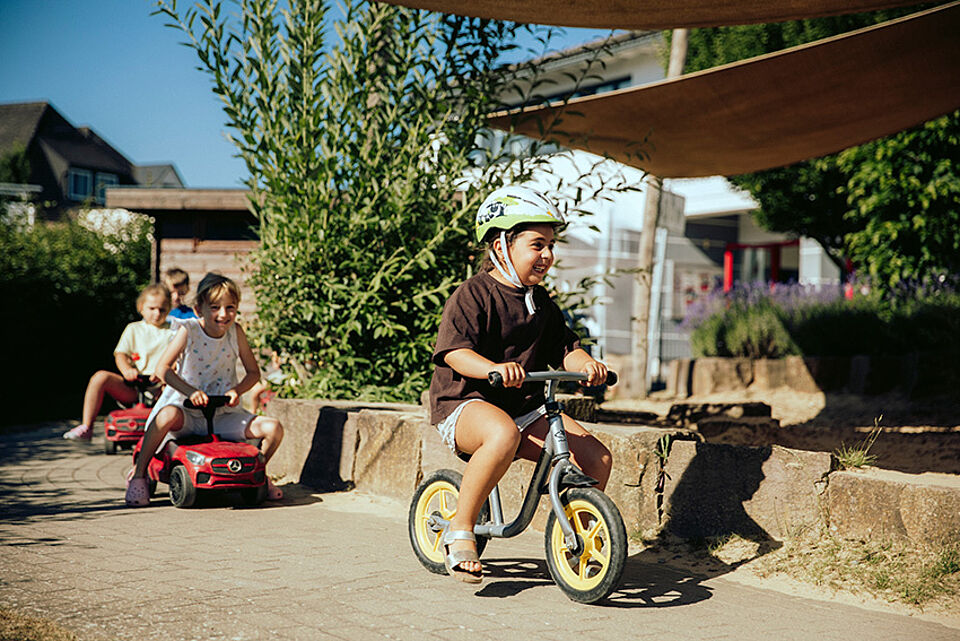 Wir machen von 10 bis 12 Uhr Bewegungsangebote für die Kinder auf dem Außengelände.
